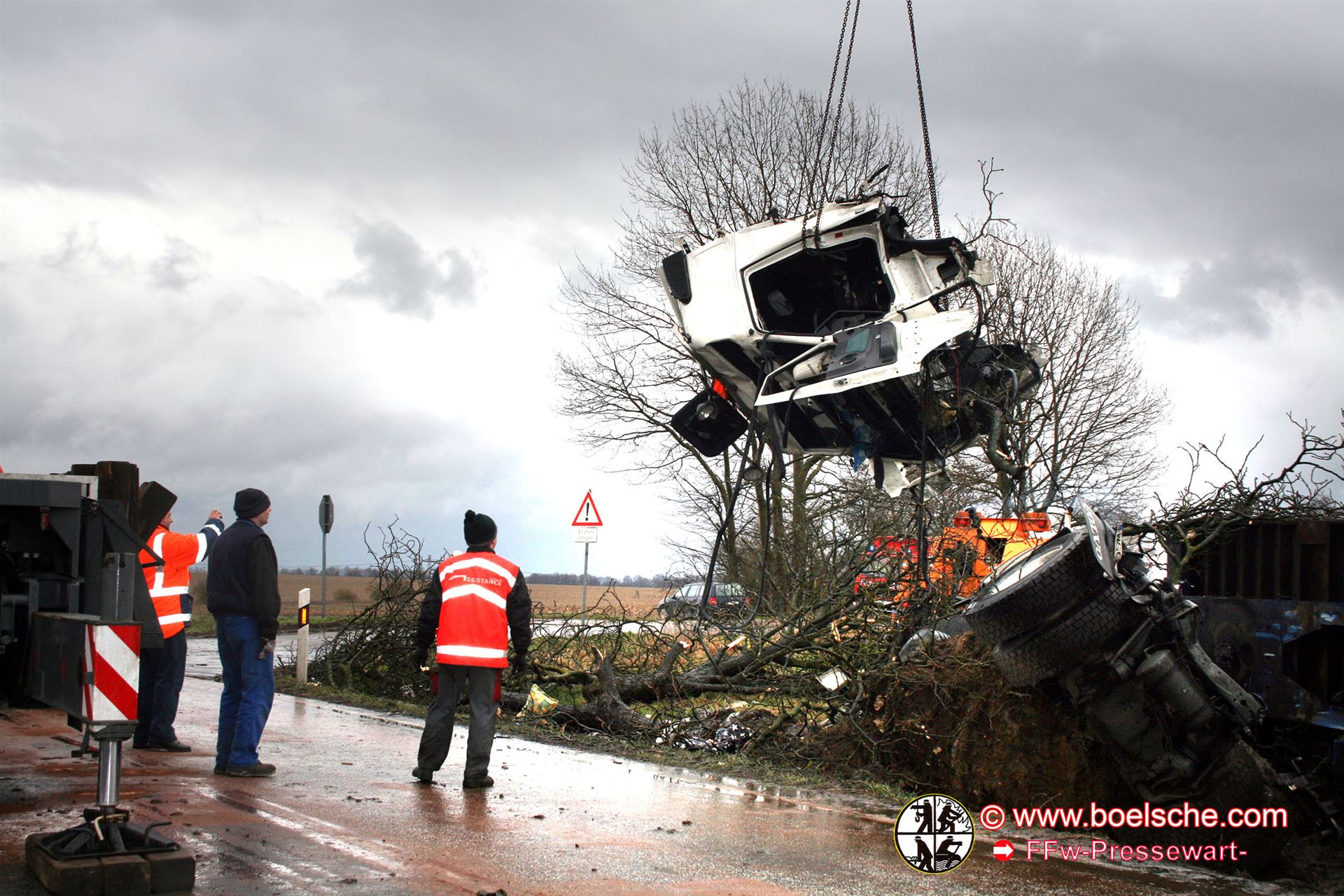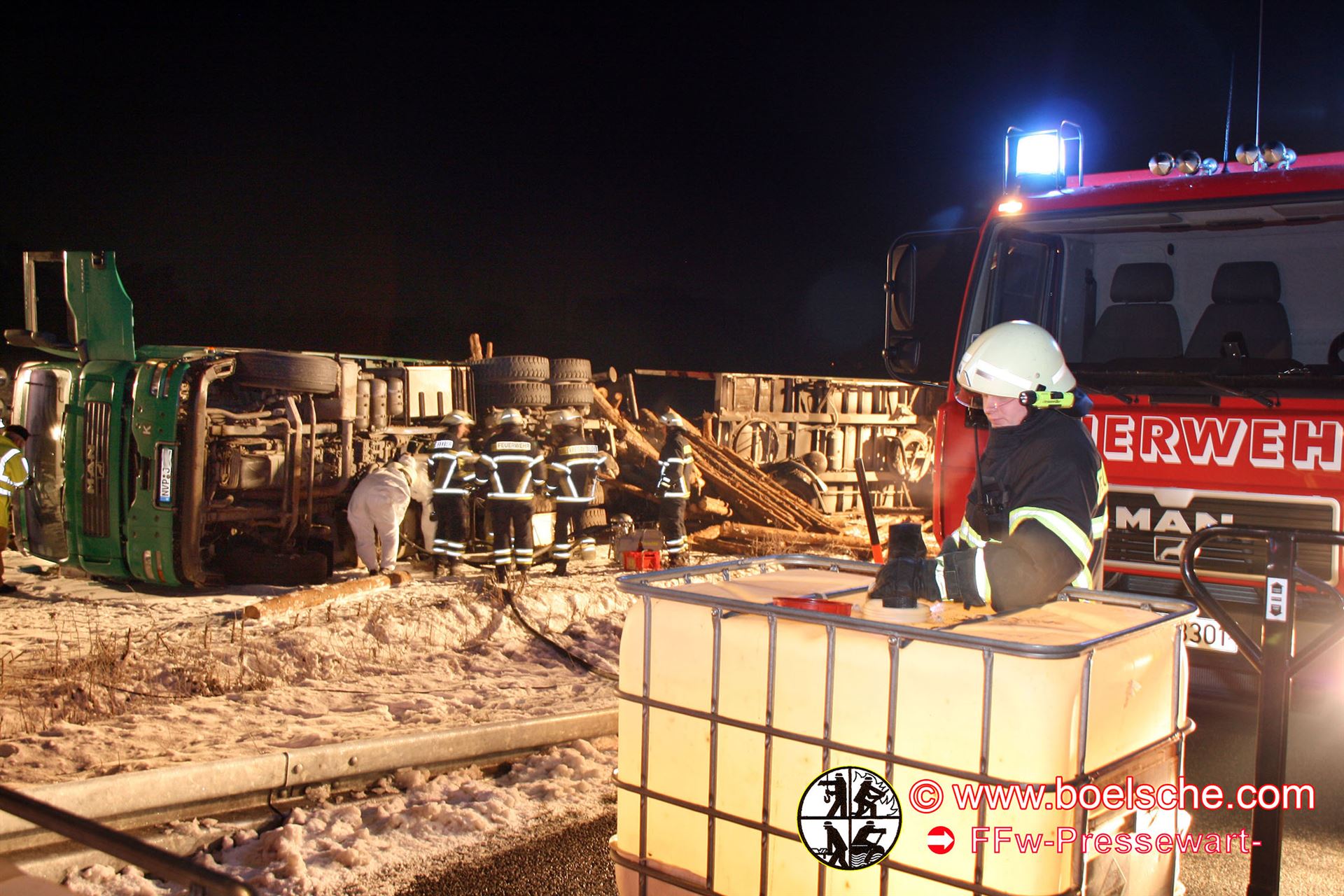 Die Kameraden der Freiwilligen Feuerwehren Groß Godems und Parchim waren im Einsatz. Zum einen wurde der Diesel sowie Hydrauliköl aus dem Laster abgepumpt und zum anderen wurde ein möglicher zweiter Fahrer gesucht. Letzteres wurde nötig, da der alkoholisierte Fahrer angab, nicht der Fahrer gewesen zu sein. Dieses entpuppte sich aber im Laufe der weiteren Ermittlungen als eine reine Schutzbehauptung.